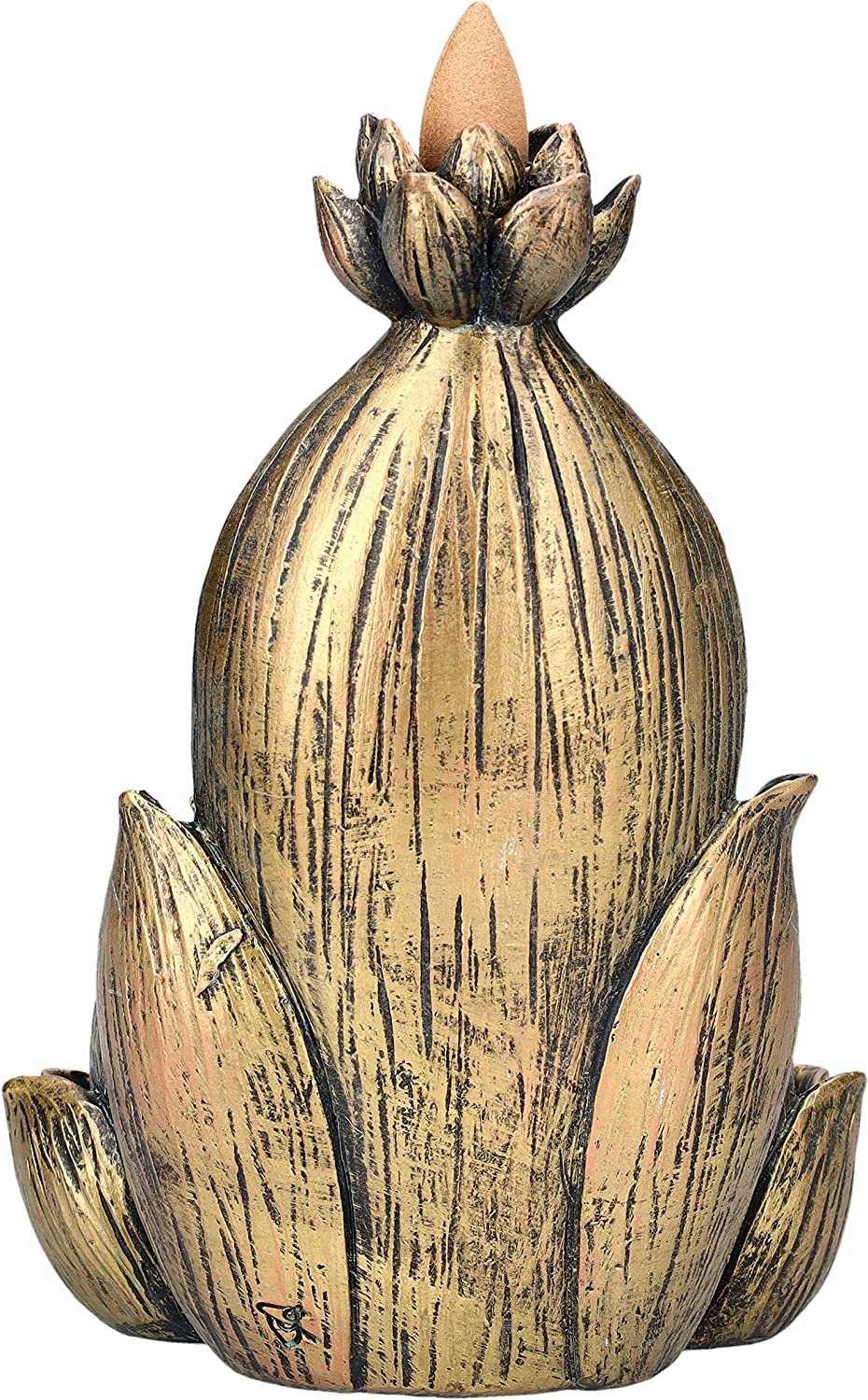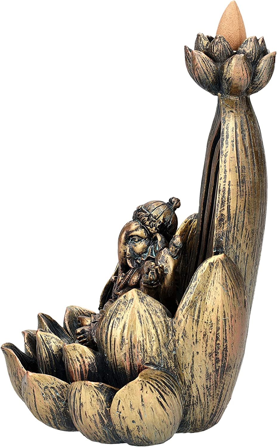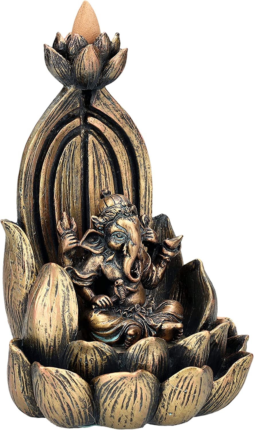 7.25" Ganesha on Lotus Backflow Incense Burner Resin Figurine