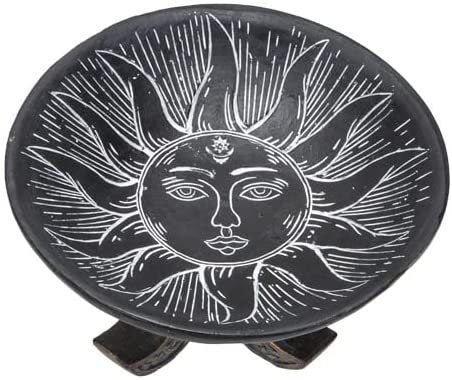 Carved Illustrated Sun and Moon Resin Trinket Bowl Black 8” Diameter