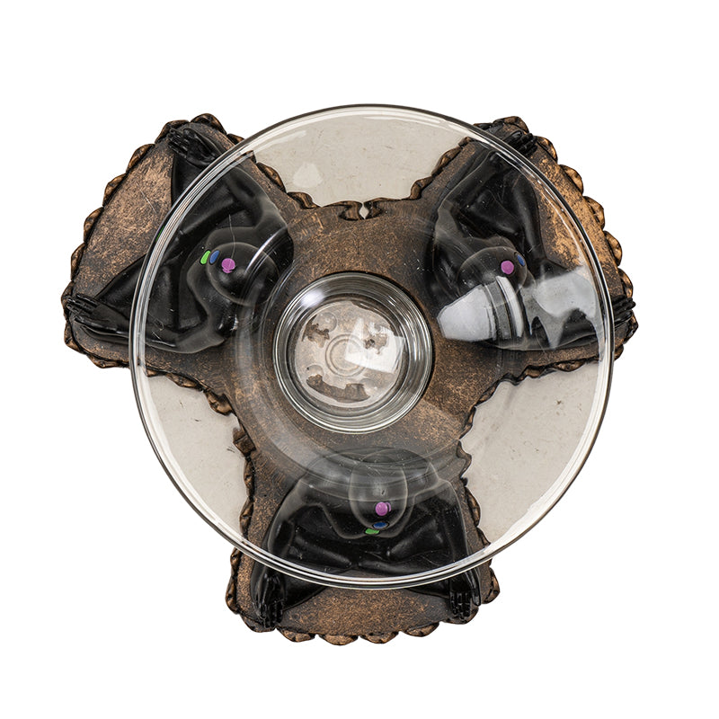 - [Unique Decor]: Striking black Zen-inspired design featuring three meditating figures holding up a glass surface, perfect for aromatherapy.