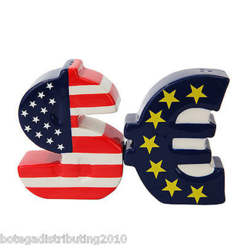 Dollar and Euro Money Sign Salt and Pepper Shaker Set Money Home Decor