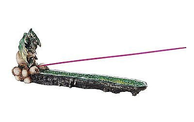 Green Dragon on Skull Gemstone Quartz Stick Incense Burner Medieval Fantasy 10.7