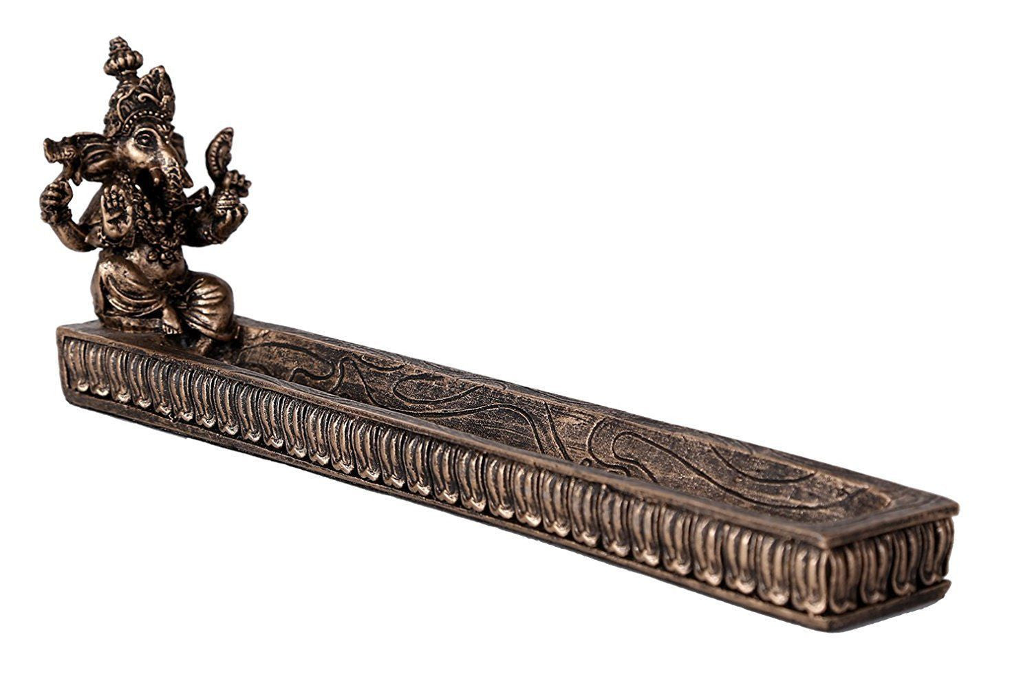 Hindu God Ganesha Stick Incense Holder Cold Cast Bronze 10 Inch Length