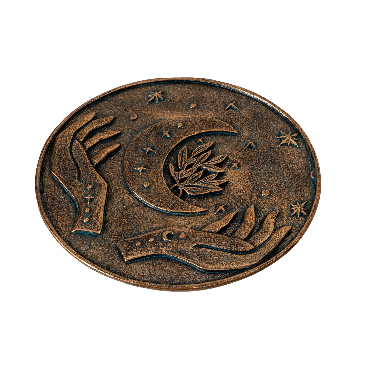 - [Mystic Moon & Stars Design]: The intricate design features celestial elements, with hands cradling a moon and stars, adding a sacred, mystical vibe to your altar or meditation space.