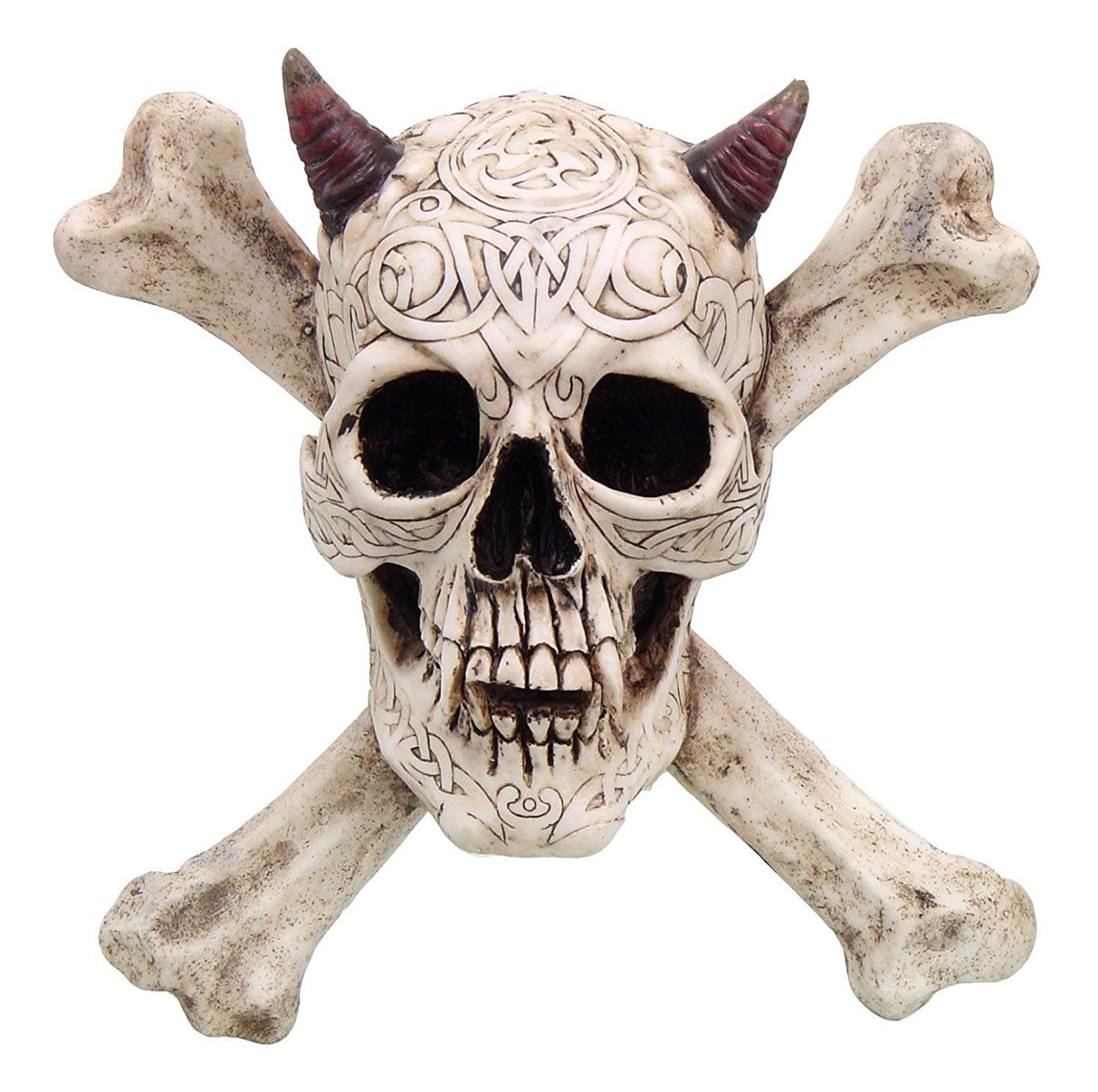 This gorgeous 10 Inch Devil Horned Skull Cross and Bones Resin Statue Figurine has the finest details and highest quality you will find anywhere! 10 Inch Devil Horned Skull Cross and Bones Resin Statue Figurine is truly remarkable. Individually hand-crafted from cold cast resin. Cast In quality designer resin. Our polyresin products are individually hand-crafted works of art, colors may vary slightly from what is pictured here. Hand Painted. Packaged in a gift box. New in Manufactures Box safe shipping with our Double Box-in-Box Protection. This Collectibles makes a great gift for any lover and adds a whimsical touch to your Decor. We have a very limited supply of these, so don't miss out! Pacific Giftware Gift-manufacturing the most beloved home decor products for more than 30 years. Legal Disclaimer: Actual product packaging and materials may contain more and different information than what is shown on our website. We recommend that you do not rely solely on the information presented and that you always read labels, warnings and directions before using. 10 Inch Devil Horned Skull Cross and Bones Resin Statue Figurine Details: *Condition: Brand New, *Item SKU: SS-PTC-9412 , *Dimensions: H: 10 (Inches) , *Crafted with: Cold Cast Resin , *More Information: Hand Painted.