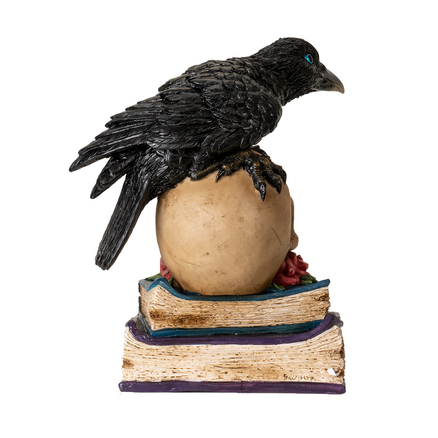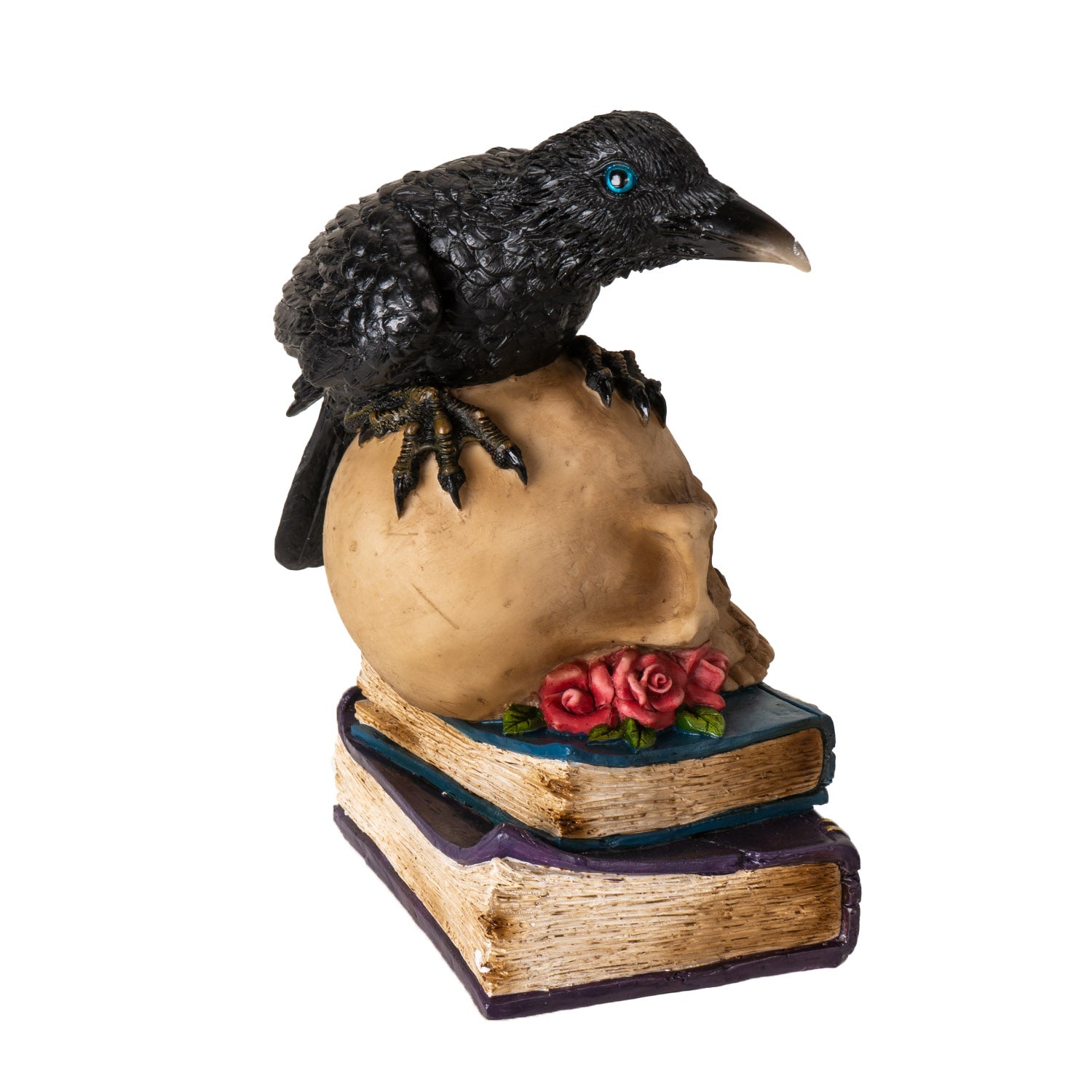 - [Intricate Design] Features an expertly detailed raven perched atop a skull with roses and stacked books, symbolizing gothic mystery and literary reverence, making it a must-have for any dark or fantasy decor collection.