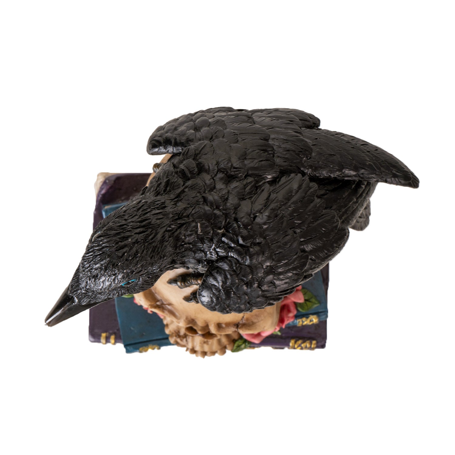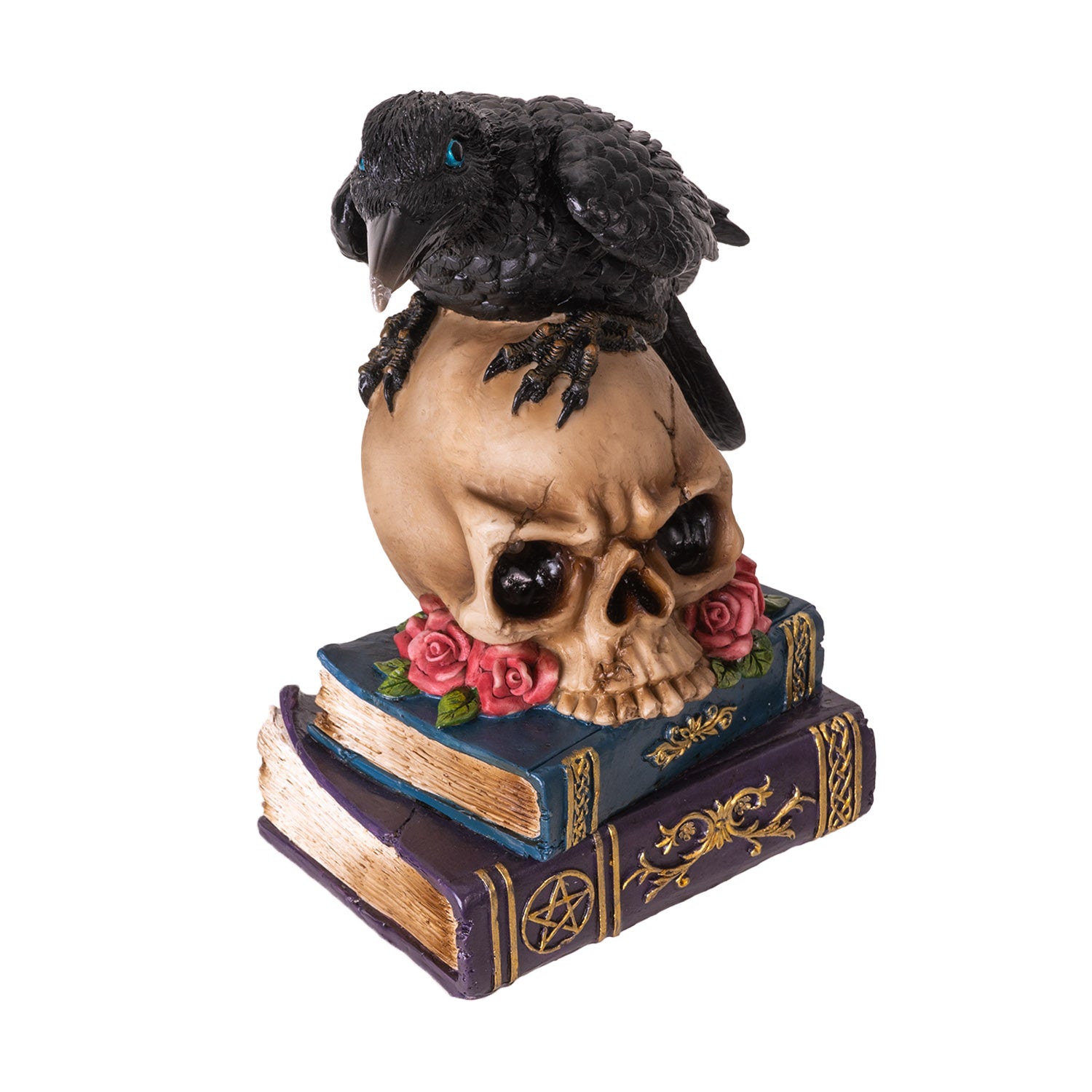 Raven on Skull and Spell Books 7.68" Tall Figurine Gothic Decor with Intricate Details
