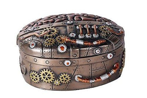 Steampunk Clockwork Mind Brain Box Cast Bronze Lidded Stash Box Sculptural Decor